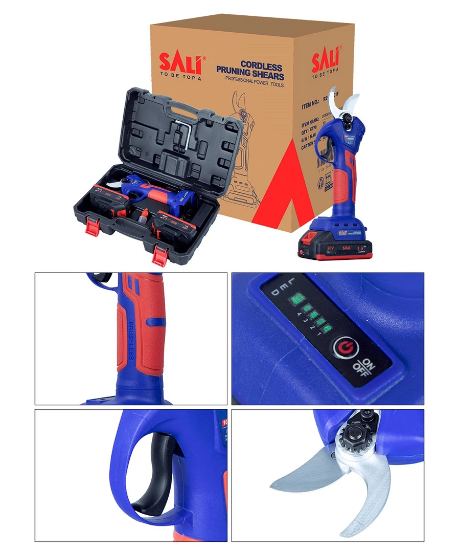 【Efficient Cutting&Strong Power】SALI cordless pruning shears is equipped with SK5 high carbon steel blade, stronger brushless motor, LED light indicator.