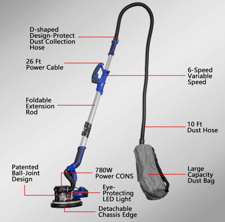 . Strong Power: This Hand life electric drywall sander features a 1050W high power motor
